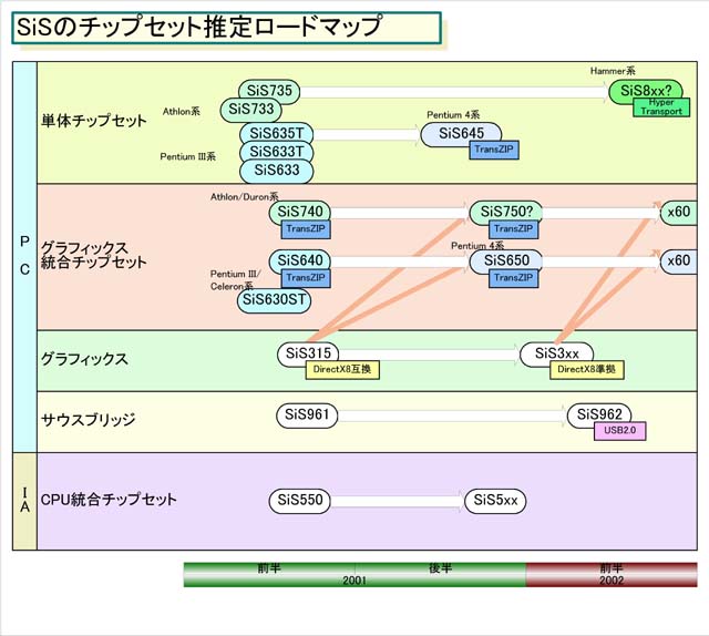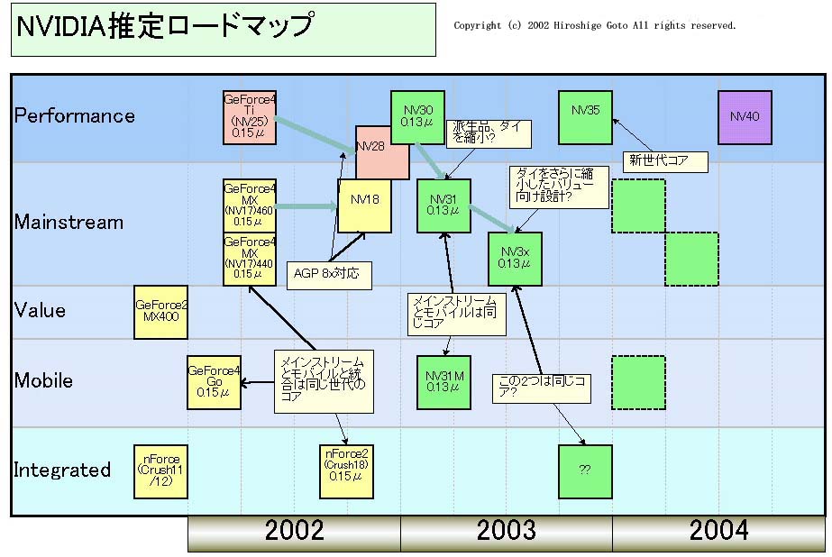roadmaps other manufacturer content date of issue rise CPU Q1-Q4 1999 11 Jan 2000 SUN CPU 1995-2001 01 Sep 1998 Transmeta Marketing strategy 06 Jul 2000 Transmeta CPU roadmap 2000-2001 06 Jul 2000 Transmeta CPU roadmap 2000-2002 18 Dec 2000 Transmeta CPU roadmap 2000-2002 15 Jun 2001 Crusoe Processor roadmap ->2001 05 Oct 2000 Crusoe Processor roadmap ->2002 MPF 2001 Crusoe Processor roadmap ->2003 Aug 2002 ALi Desktop Chipsets 24 Jul 2000 ALi Mobile Chipsets 24 Jul 2000 SiS Chipsets 2000-2002 27 Feb 2001 SiS Chipsets 2000-2002 13 Aug 2001 nVidia 2000-2001 13 Sep 2000 nVidia "Moore's Law" 13 Feb 2001 nVidia chip roadmap 1999-2005 05 Sep 2002 nVidia chip roadmap 2002-2004 05 Sep 2002 ATI vs nVIDIA roadmap 1999-2003 09 Sep 2002 HP PA-8xxx 1996-2002 04 Mar 2001 DirectX and graphic chipsets 13 Aug 2002 DirectX and graphic chipsets 25 Sep 2002 Sony Emotion Engine 07 Oct 1999 ATI chip roadmap Q4 2000 -Q1 2002 09 Aug 2001 ATI card roadmap 2H00 - 1H02 09 Aug 2001 ATI chip roadmap 2002-2004 09 Sep 2002 ATI chip roadmap 2002-2005 09 Sep 2002 ATI vs nVIDIA roadmap 1999-2003 09 Sep 2002 DRAM roadmap 2000-2006 30 Nov 2001